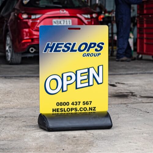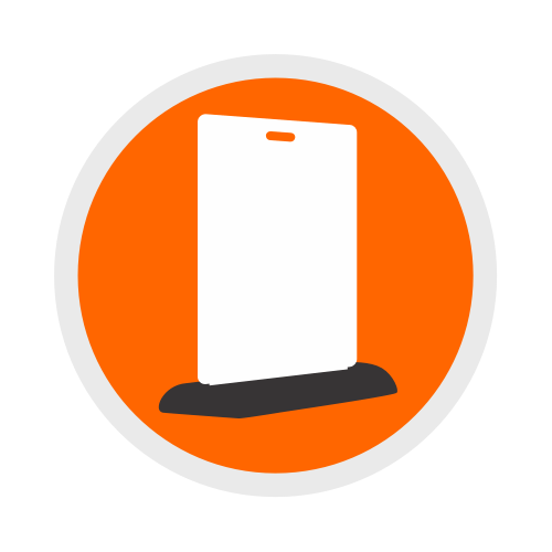 Got suitable pavement space? Get your message closer to the traffic! Printed in full colour, both sides with a plastic, fill-able base and cut out handle for easy mobility.